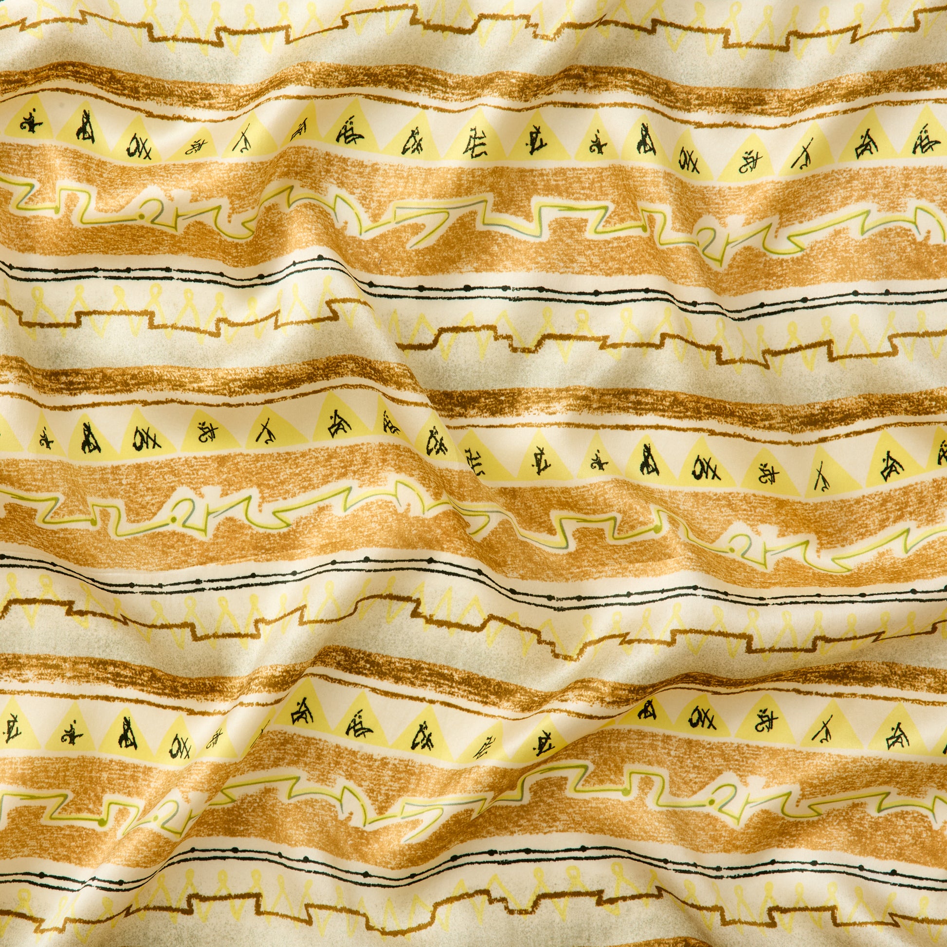 This design is called Triangles & Lines and was created by Henry Moore. It was used as a catalogue cover for the Painting into Textiles Exhibition run by the Institute of Contemporary Arts in October 1953. It was purchased by Whiteheads and produced as a textile in 1954.
