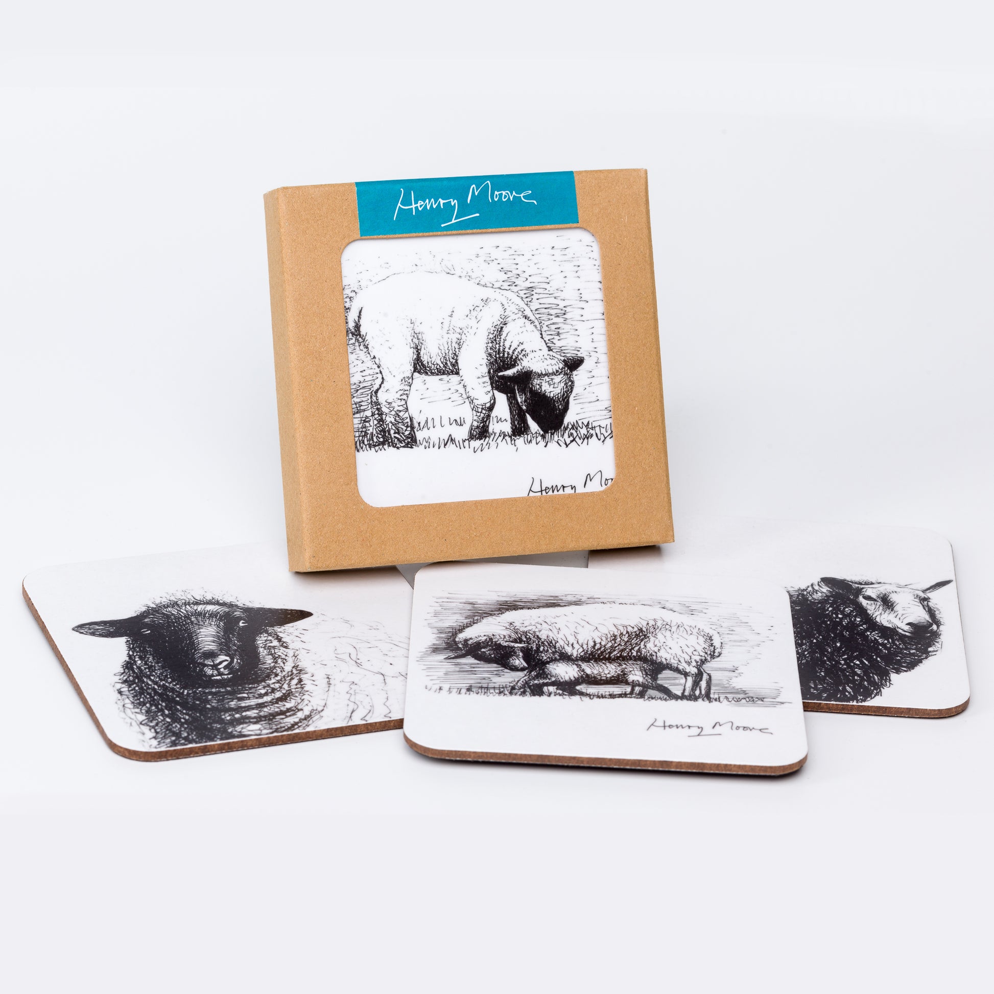 A set of melamine coasters featuring four drawings from Henry Moore's 1972 Sheep Sketchbook.